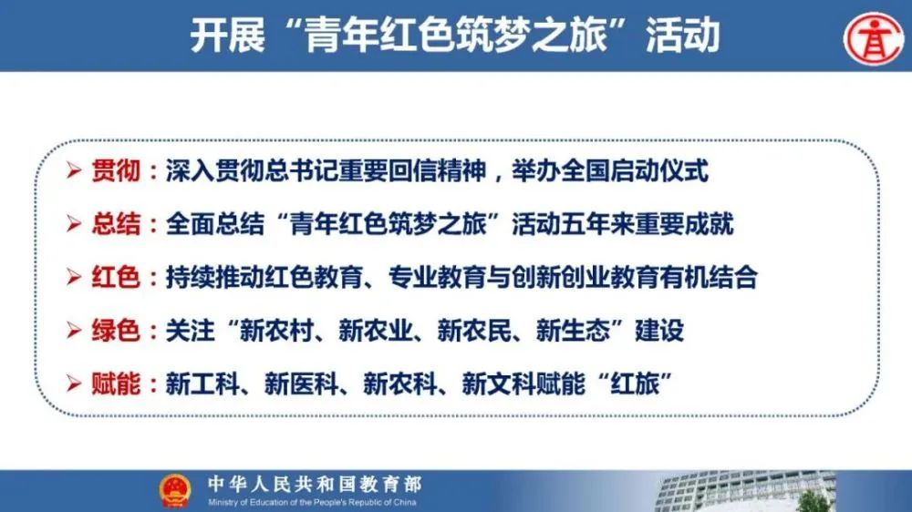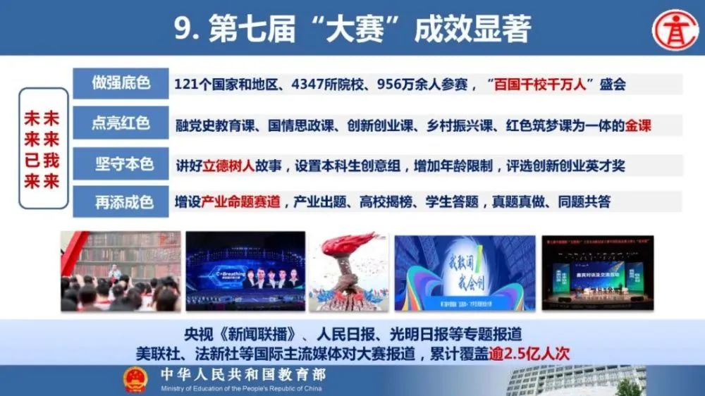 (三)回归创新,青年红色筑梦之旅本质是独具特色的三全育人中国模式,把四新的建设和乡村振兴的四新紧密结合。以新面貌、新形式、新内容办好大赛,开启创新创业教育改革新征程。