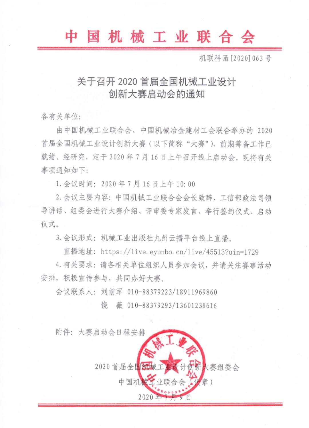 关于召开2020首届全国机械工业设计创新大赛启动会的通知